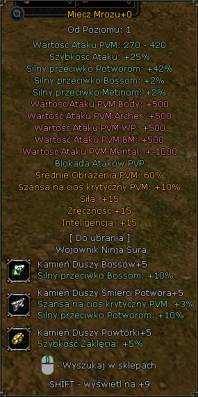 - Kamienie Duszy nie dropią już z Metinów, wylatują z nich od razu Rdzenie Kamieni Dusz, Kamienie Duszy +5/3 można zakupić u Handlarki Różności