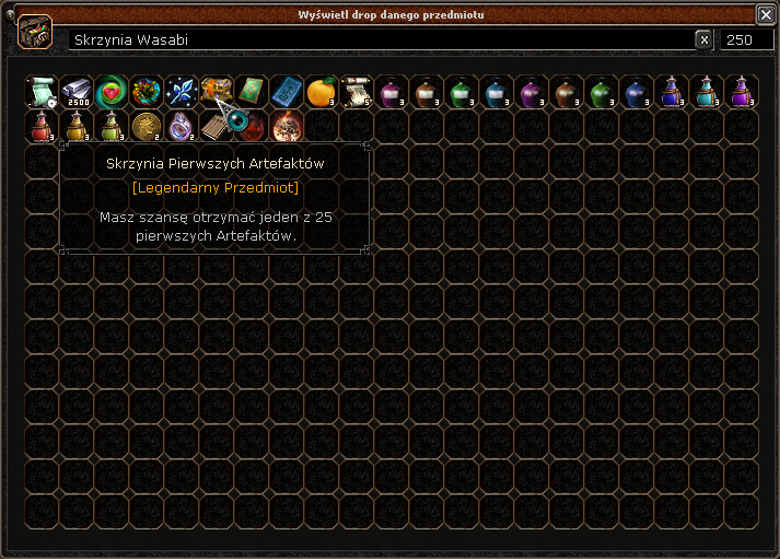 - Zwiększono x3 ilość dodatkowych nagród z Rzadkich Potworów za Symbol Aszary II. Edytowano drop z skrzynki, którą otrzymujemy z Goblinów za Symbol Aszary II. Przed/Po: