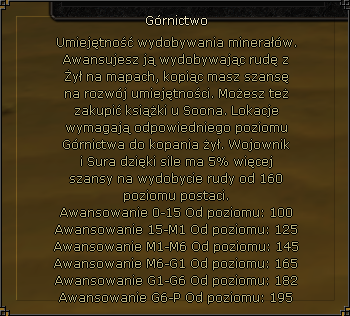 - Od teraz awansowanie Górnictwa przez kopanie jest uzależnione od poziomu postaci, a nie od lokacji