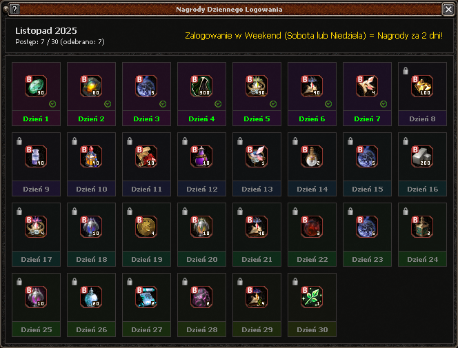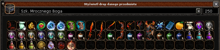 - Dodano nowe Legendarne Bossy na każdym przedziale, będą wracały w niedziele, poniedziałki, środy oraz piątki o 21:00 na CH1. Jest na nich aktywne PvP. Oprócz bazowego dropu można otrzymać specjalną Walutę do wymiany w Sklepie Rankingowym i Legend w Miastach. Do wylosowania ze skrzynki zakupionej w sklepie będą elementy Setu Mrocznego Boga oraz nagrody dodatkowe, takie jak Kupon 5 SM, VIP 1h, Bonusy Kostiumowe 1h. Progi nabicia to 2/5/10/15% dla 2/5/10/15 sztuk Waluty. Dla wpisania się w drop ogólny jest to 4%. Drop bazowy to połączenie Bossów z przedziałów, zwykłych, heroicznych, żywiołaków i Bossów z Dungeonów łącznie z Artefaktami. Dodatkowo szanse na Smocze Monety, Amulety MOCY oraz Zaczarowania Amuletów.