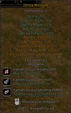 - Zmieniono startowe przedmioty, dostajemy od razu EQ Górnika Mrozu na 1 poziom, Kilof +2 oraz cały Ekwipunek PvM Mrozu na +0 z włożonymi już Kamieniami Duszy