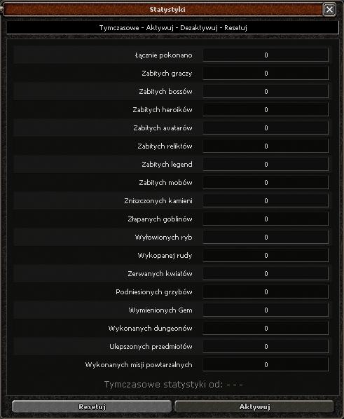 - Dodano tymczasowe statystyki dostępne pod klawiszem 'J'. Różnica poziomowa między graczem a potworem może wynosić maksymalnie 15. Odświeża się co około 30 sekund.