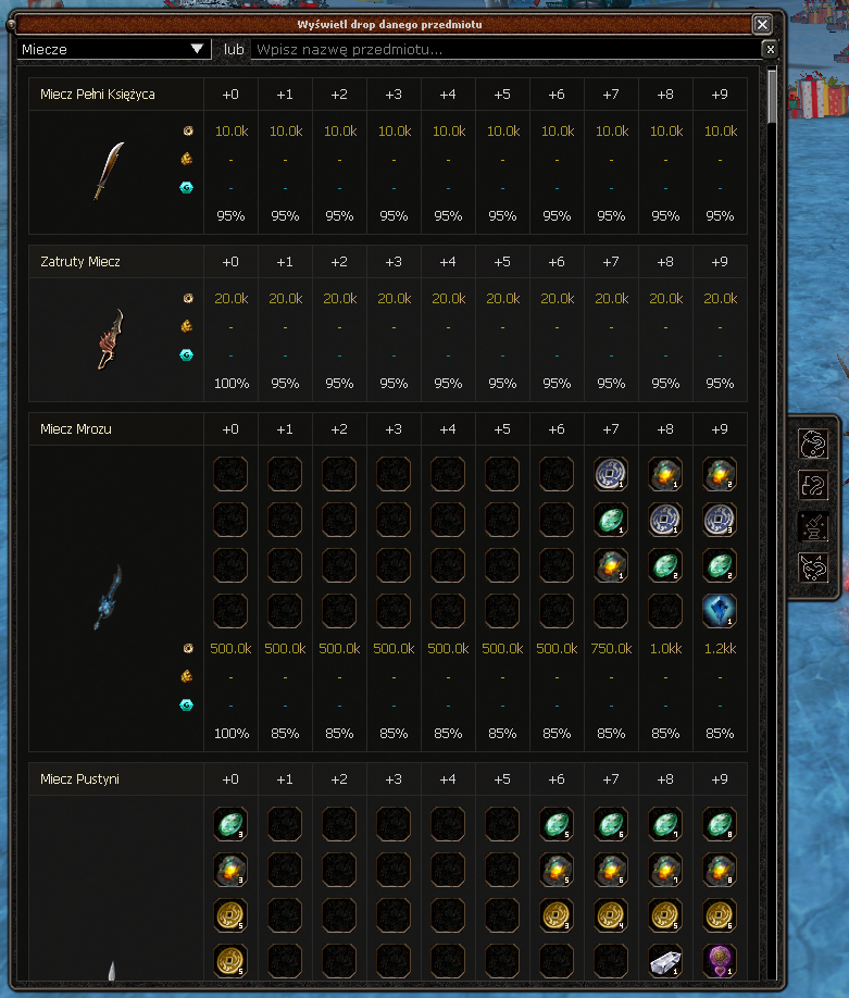 - Do Wikipedii dodano ulepszanie przedmiotów oraz drop z Potworów/Kamieni/Bossów(jej pierwsze odpalenie na sesji klienta powoduje mały lag)