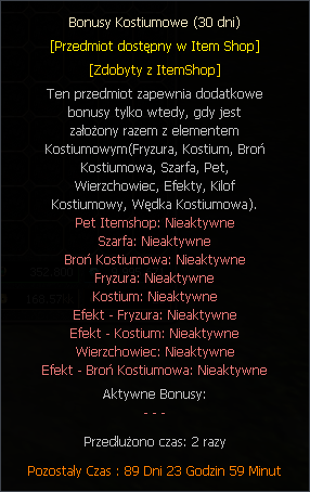 - Dodano możliwość stackowania czasu bonusów kostiumowych,