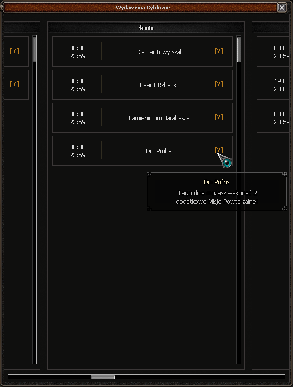 - Dodano nowe wydarzenie "Dni Próby" w środę oraz niedzielę, obowiązuje całą dobę, podczas aktywnego wydarzenia limit powtarzalnych misji wzrasta o 2,
