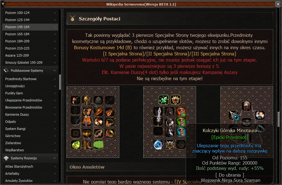 - Dodano blokadę przebicia poziomu na 104/124/144/164/184/209 poziomie. Zdobędziemy na nich 99.99% expa i przestaniemy go otrzymywać. Przebić poziom można udając się do Kapitana w mieście.